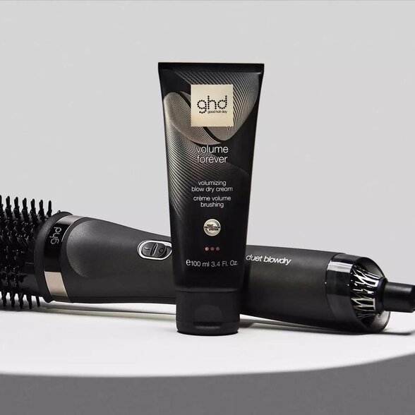 S GHD Volume Forever ochranným krémom pred fénovaním vlasov dosiahnete efekt profesionálne vyfúkaného účesu aj doma. Každé fénovanie vlasov sa tak mení na jednoduchý krok k objemným, zdravšie vyzerajúcim vlasom, ktoré si udržia tvar a vitalitu počas celého dňa.