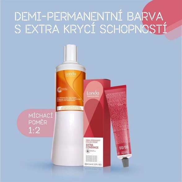 Miešací pomer: Kombinujte vždy demi-permanentnú farbu Extra Coverage Color Londa Professional s vyvíjacou emulziou 4%.