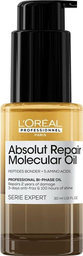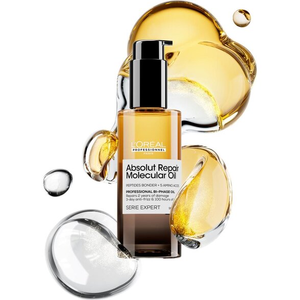 Ak hľadáte olej na poškodené vlasy, ktorý nefunguje iba na povrchu, ale cielene zasahuje do štruktúry vlasového vlákna, L'Oréal Professionnel olej na vlasy Absolut Repair Molecular Oil predstavuje novú generáciu profesionálnej starostlivosti.