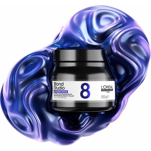 Minimálna nežiaduca vôňa. Textúra s nízkou volatilitou. Vysoká priľnavosť. Fialový zosvetľujúci balzam Blond Studio 8 Bonder Inside.