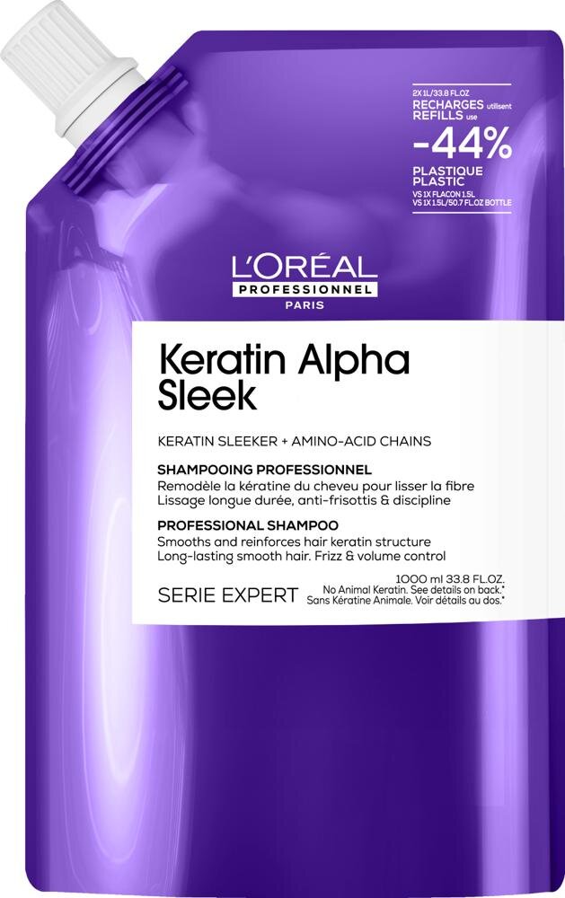 L'Oréal Professionnel Keratin Alpha Sleek uhladzujúci šampón na krepovité vlasy 1000ml, náplň