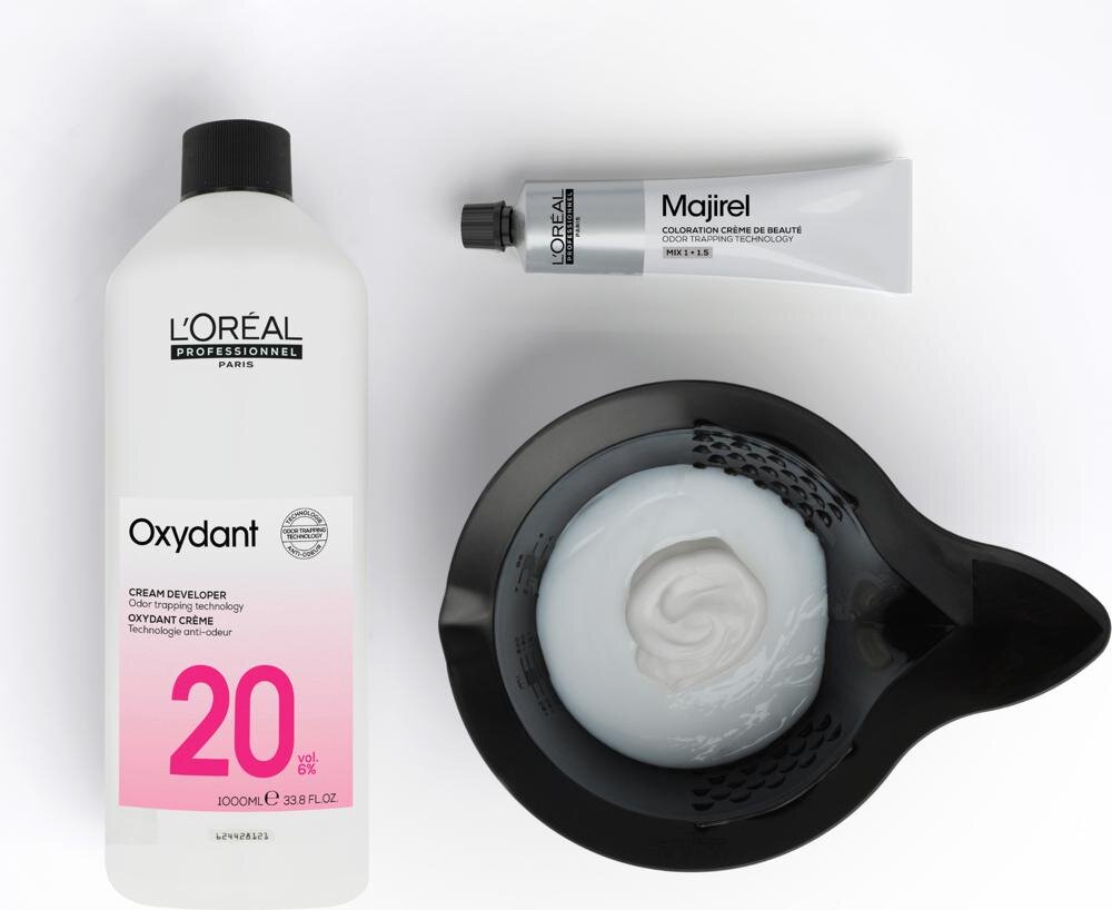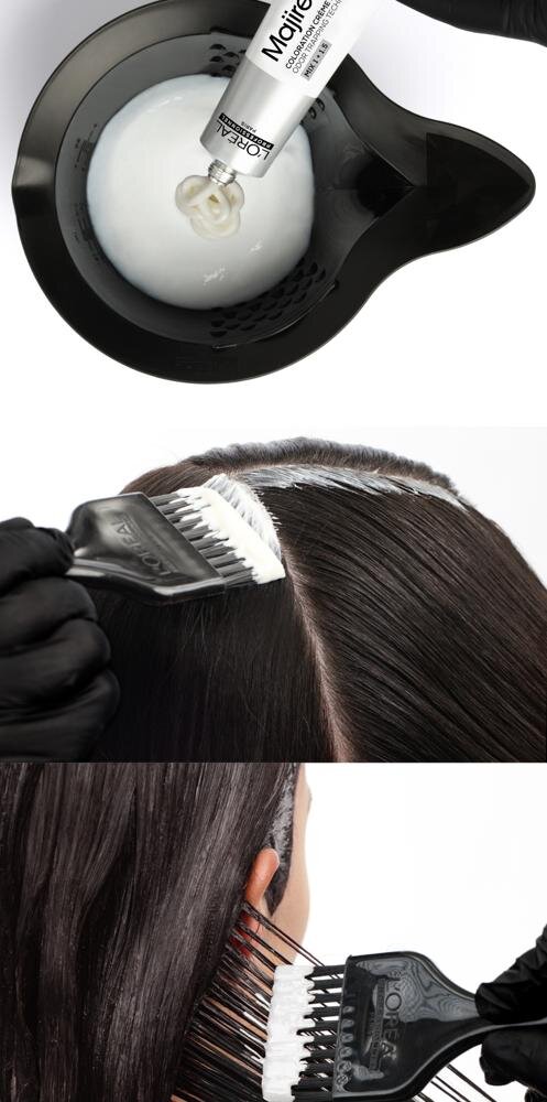 Aplikácia a čas pôsobenia - Zmiešajte farbu Majirel s vyvíjačom L'Oréal Professionnel Oxydant (12.5, 20 alebo 30 VOL) v pomere 1 : 1,5. Miešajte do hladkej, homogénnej krémovej konzistencie, ideálne šľahačom alebo aplikátorom.
