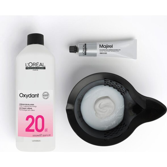 Aplikácia a čas pôsobenia - Zmiešajte farbu Majirel s vyvíjačom L'Oréal Professionnel Oxydant (12.5, 20 alebo 30 VOL) v pomere 1 : 1,5. Miešajte do hladkej, homogénnej krémovej konzistencie, ideálne šľahačom alebo aplikátorom.