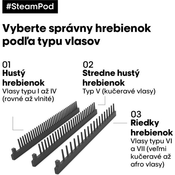 - Hustý hrebienok: Na stupnici L'Oréal* zodpovedá vlasom typu I až IV (rovné až vlnité);