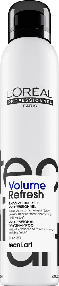 L'Oréal Professionnel Tecni.Art Volume Refresh je moderný suchý šampón na vlasy, ktorý bol vyvinutý pre rýchle osvieženie účesu bez použitia vody a bez kompromisov v kvalite vlasov. Ide o profesionálny suchý šampón v spreji, určený pre kaderníkov aj náročných zákazníkov, ktorí očakávajú okamžitý efekt, čistý vzhľad vlasov a prirodzený objem od korienkov. Vďaka svojej ľahkej, nemastnej receptúre patrí medzi produkty, ktoré sú často označované ako najlepší suchý šampón na vlasy v profesionálnej vlasovej kozmetike.