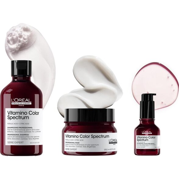 Vitamino Color Spectrum od L'Oréal Professionnel je dokonalé riešenie pre dlhodobú ochranu farby a žiarivý vzhľad farbených vlasov. Táto pokročilá starostlivosť bola navrhnutá špeciálne pre farbené vlasy, aby uchovala intenzívnu a žiarivú až 100 dní. Rozlúčte sa s vyblednutými a matnými vlasmi a privítajte živý a lesklý odtieň, ktorý zostane svieži ako v deň farbenia.