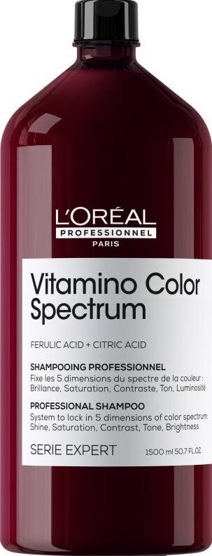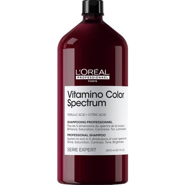 Máte farbené vlasy a chcete, aby ich farba zostala žiarivá čo najdlhšie? L'Oréal Professionnel Vitamino Color Spectrum profesionálny šampón je špeciálne vyvinutý na ochranu farbených vlasov. Jemne čistí a zároveň predlžuje intenzitu farby až 100 dní. Pomáha predchádzať vyblednutiu, chráni vlasové vlákno a dodáva vlasom neodolateľný lesk.