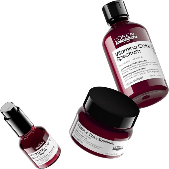 Vitamino Color Spectrum od L'Oréal Professionnel je dokonalé riešenie pre dlhodobú ochranu farby a žiarivý vzhľad farbených vlasov. Táto pokročilá starostlivosť bola navrhnutá špeciálne pre farbené vlasy, aby uchovala intenzívnu a žiarivú až 100 dní. Rozlúčte sa s vyblednutými a matnými vlasmi a privítajte živý a lesklý odtieň, ktorý zostane svieži ako v deň farbenia.