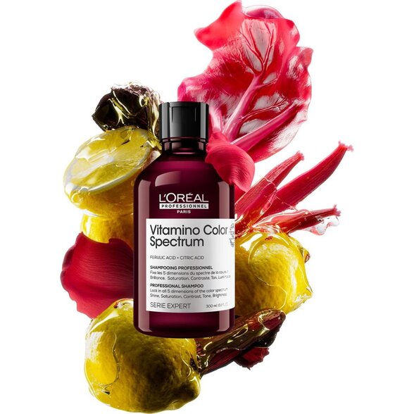 Vitamino Color Spectrum od L'Oréal Professionnel je dokonalé riešenie pre dlhodobú ochranu farby a žiarivý vzhľad farbených vlasov. Táto pokročilá starostlivosť bola navrhnutá špeciálne pre farbené vlasy, aby uchovala intenzívnu a žiarivú až 100 dní. Rozlúčte sa s vyblednutými a matnými vlasmi a privítajte živý a lesklý odtieň, ktorý zostane svieži ako v deň farbenia.