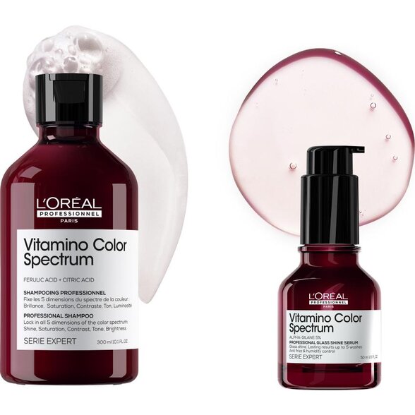 - Sérum na sklenený lesk Vitamino Color Spectrum: Bezoplachové sérum, ktoré dodáva okamžitý lesk a vyhladzuje vlasy.