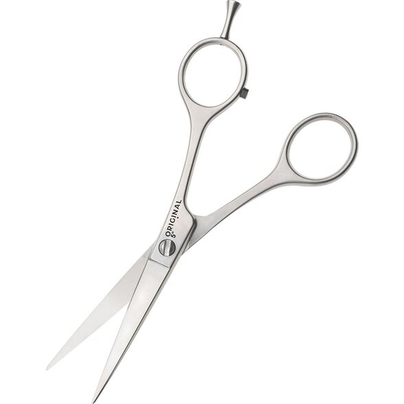 Klasické rovné nožničky z európskej kovanej oceli. Jedna mikro-zúbkovaná čepeľ a jedna rovná. Temper...
