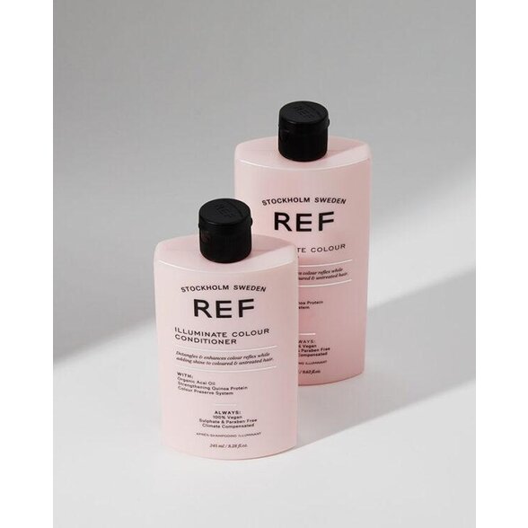 SYSTÉM NA OCHRANU VLASOV POČAS FARVENIA COLOUR PRESERVE SYSTEM - Produkty REF dodávajú vlasom žiarivú farbu, ktorá je plná života vďaka nášmu jedinečnému systému Colour Preserve System. Systém chráni farbu vlasov, a to ako prírodnú, tak kozmetickú. Systém je založený na unikátnej zmesi výťažkov zo slnečnicových semienok a vysoko účinného polyméru, ktoré spoločne vytvárajú prirodzený ochranný štít. Systém taktiež poskytuje vlasom ochranu pred negatívnymi vplyvmi okolitého prostredia a účinne zamedzuje vyblednutiu farby. Nejedná sa len o ochranu pred UV žiarením, ale aj pred voľnými radikálmi, ktoré časom poškodzujú kvalitu vlasov a ich farbu. Vzhľadom na to, že náš systém Colour Preserve System je súčasťou zloženia všetkých produktov REF, môžete si byť istí, že vaša farba je v dobrých rukách, bez ohľadu na to, ktorý produkt si vyberiete.