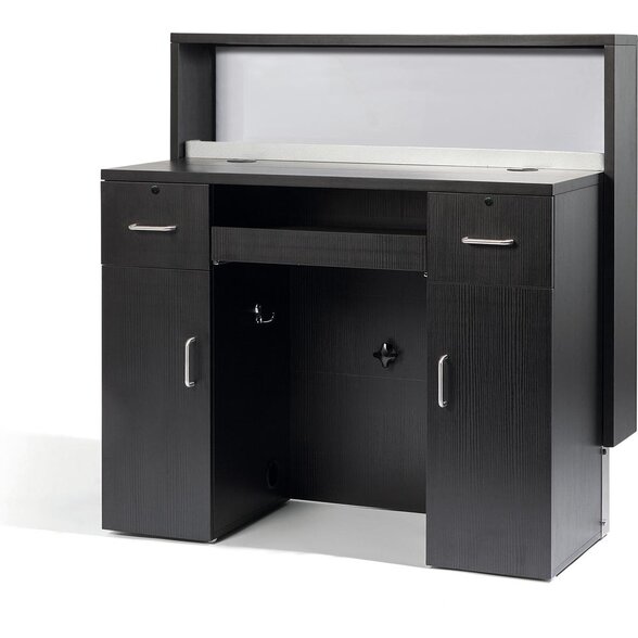 Drevená recepcia s osvetleným priečelím. Ochrana pri nohách z nerezovej ocele 304. 2 šuflíky na zamy...