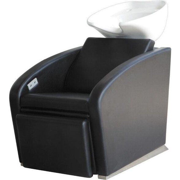 Umývací box s komfortným sedadlom integrovaným do kovovej konštrukcie. Biele keramické sklápacie umý...