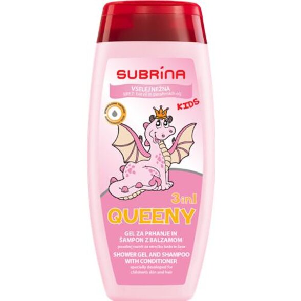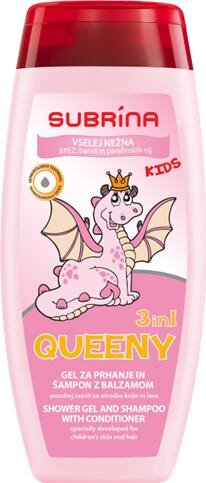 Sprchový gél, šampón a kondicionér je hravý a zároveň premyslene vyvinutý detský umývací produkt - Subrina Kids Queeny 3v1
