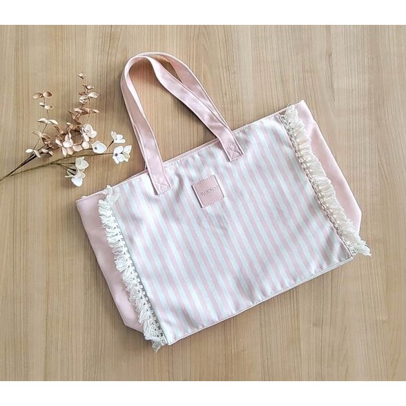 Štýlový letný doplnok v pastelovo ružovej a béžovej farbe - Subrina Professional Beach Bag veľká taš...