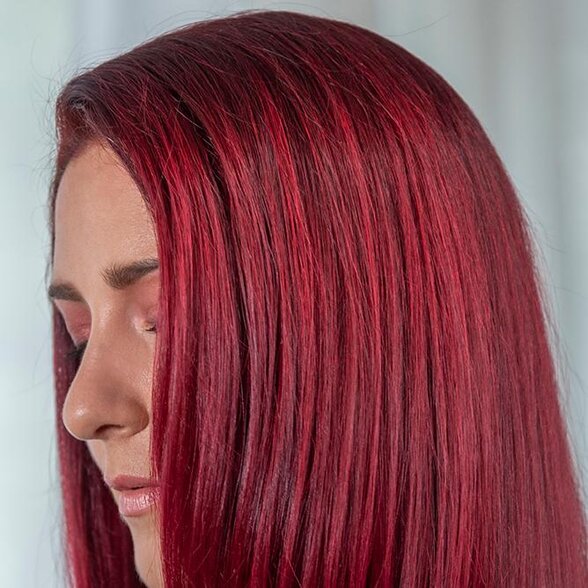 Vďaka vysokej intenzite pigmentu môže odtieň Bordeaux na vlasoch vydržať o niečo dlhšie ako niektoré jemnejšie pastelové odtiene. Výsledkom sú sýte bordové vlasy, ktoré pôsobia živým, lesklým a elegantným dojmom.