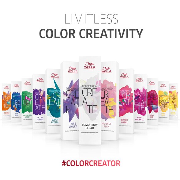 Color Fresh CREATE je kompletná semipermanentná výrazná paleta farieb. 12 špeciálne vytvorených čistých žiarivých odtieňov a 3 prídavné odtiene. Môže byť použité pre farbenie celú hlavu alebo aj pre čiastočné techniky. Verné odtiene, ktoré vydržia až 20 umytí*. Plne miešateľné, krásne pastelové a farebné výsledky na mieru. Pridáva čistý tón. Ideálne pre personalizované a výrazné farebné výsledky