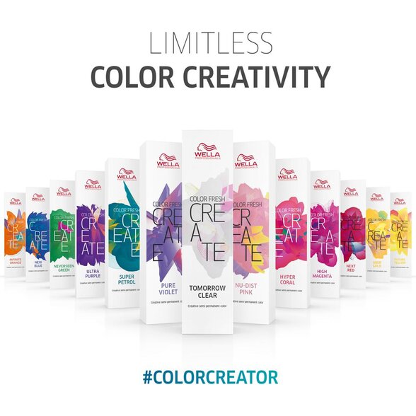 Color Fresh CREATE je kompletná semipermanentná výrazná paleta farieb. 12 špeciálne vytvorených čistých žiarivých odtieňov a 3 prídavné odtiene. Môže byť použité pre farbenie celú hlavu alebo aj pre čiastočné techniky. Verné odtiene, ktoré vydržia až 20 umytí*. Plne miešateľné, krásne pastelové a farebné výsledky na mieru. Pridáva čistý tón. Ideálne pre personalizované a výrazné farebné výsledky