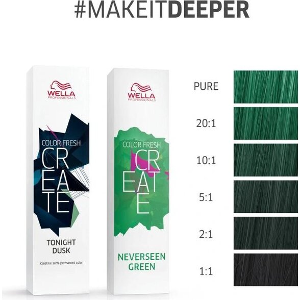 Color Fresh CREATE je kompletná semipermanentná výrazná paleta farieb. 12 špeciálne vytvorených čistých žiarivých odtieňov a 3 prídavné odtiene. Môže byť použité pre farbenie celú hlavu alebo aj pre čiastočné techniky. Verné odtiene, ktoré vydržia až 20 umytí*. Plne miešateľné, krásne pastelové a farebné výsledky na mieru. Pridáva čistý tón. Ideálne pre personalizované a výrazné farebné výsledky