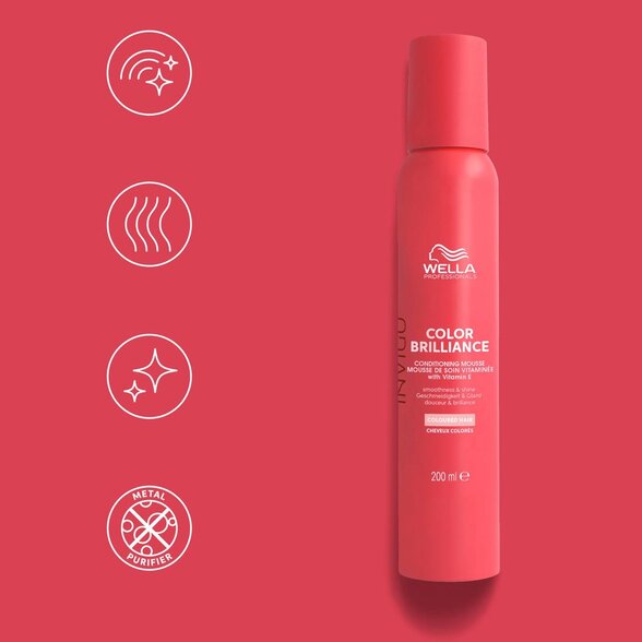 Invigo Color Brilliance – odborná starostlivosť o farbené vlasy. Červená línia Invigo Color Brilliance od Wella Professionals je špeciálne navrhnutá pre potreby farbených vlasov. Každý produkt v tejto sérii – od šampónov cez masky až po stylingové prípravky – kombinuje pokročilé technológie s prírodnými antioxidantmi, aby vlasy zostali žiarivé, zdravé a farebne bohaté čo najdlhšie.
