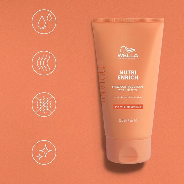 Wella Professionals Nutri Enrich línia je záchranou pre poškodené a suché vlasy. Každý produkt tejto rady, vrátane Frizz Control krému, je vytvorený s dôrazom na hĺbkovú regeneráciu a ochranu vlasov pred každodennými nástrahami – od horúceho fénovania až po mestské znečistenie. Tento krém zároveň pomáha zamedziť budúcemu krepovateniu, čím sa stáva neoceniteľným pomocníkom v každej vlasovej rutine.