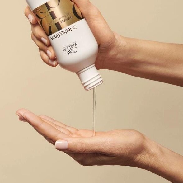 Ako používať? Naneste šampón na mokré vlasy, jemne vmasírujte do pokožky hlavy aj do dĺžok, vytvorte penu a opláchnite. V prípade potreby opakujte. Pre maximálny účinok odporúčame kombinovať s ďalšími produktami z rady Wella Oil Reflections.