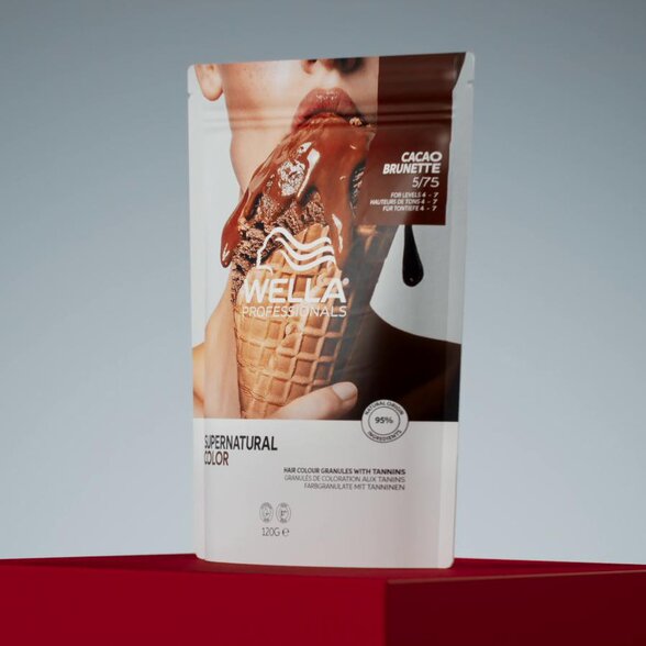 Hlboká kakaová hnedá s profesionálnym výsledkom - Wella Professionals Supernatural Color 5/75 Cacao Brunette predstavuje modernú svetlú hnedo-mahagónovú hnedú, ktorá kombinuje prírodné zloženie s precíznou salónnou technológiou. Vďaka vysokému podielu ingrediencií prírodného pôvodu a vegánskej receptúre je ideálnou voľbou pre zákazníčky, ktoré chcú intenzívnu, no prirodzene pôsobiacu hnedú farbu.