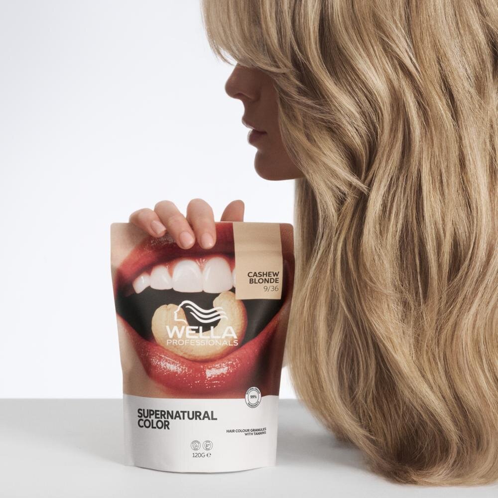 Wella Professionals Supernatural Color 9/36 Cashew Blonde predstavuje modernú prírodnú farbu na blond vlasy, ktorá spája silu rastlinných zložiek s precíznou technológiou salónnej kvality. Vďaka vysokému podielu ingrediencií prírodného pôvodu a vegánskemu zloženiu ponúka šetrné, no zároveň spoľahlivé riešenie pre klientky, ktoré chcú krásnu blond bez kompromisov.