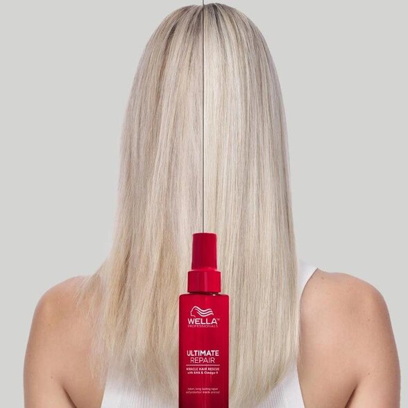 Wella Professionals Ultimate Repair Miracle Hair Rescue je luxusná kúra na poškodené vlasy, ktorá regeneruje vlasové vlákna už za 90 sekúnd – bez potreby oplachovania. Toto bezoplachové vlasové sérum kombinuje silu AHA kyselín a omega-9 mastných kyselín, vďaka čomu hĺbkovo obnovuje štruktúru vlasu zvnútra aj zvonku. Výsledkom sú vlasy viditeľne zdravšie, silnejšie a hladšie už po prvom použití.