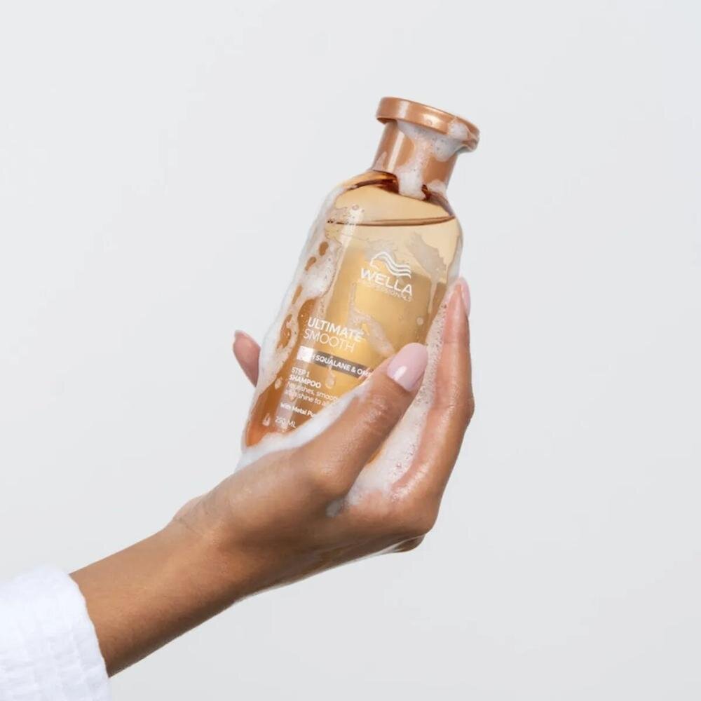 ULTIMATE SMOOTH Šampón je ideálny pre suché a poškodené vlasy, ktoré potrebujú hĺbkovú regeneráciu a ochranu pred ďalším poškodením. Ak sú vaše vlasy vystavené tvrdým vodám, stylingovým prípravkom alebo častému tepelnému upravovaniu, tento šampón pomáha odstraňovať nahromadené nečistoty a obnovuje zdravý vzhľad vlasov.